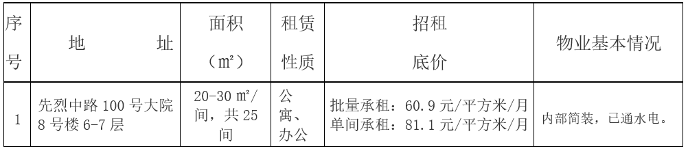 (6)批量承租人必须是具备运营管理办公用房经验的物业类管理公司或科研院所,不得个人承租。不得将承租场地分租给中介或其他物业公司进行层层转租。